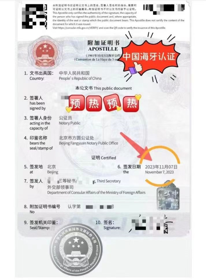 • 中國海牙認證附加證明書Apostille